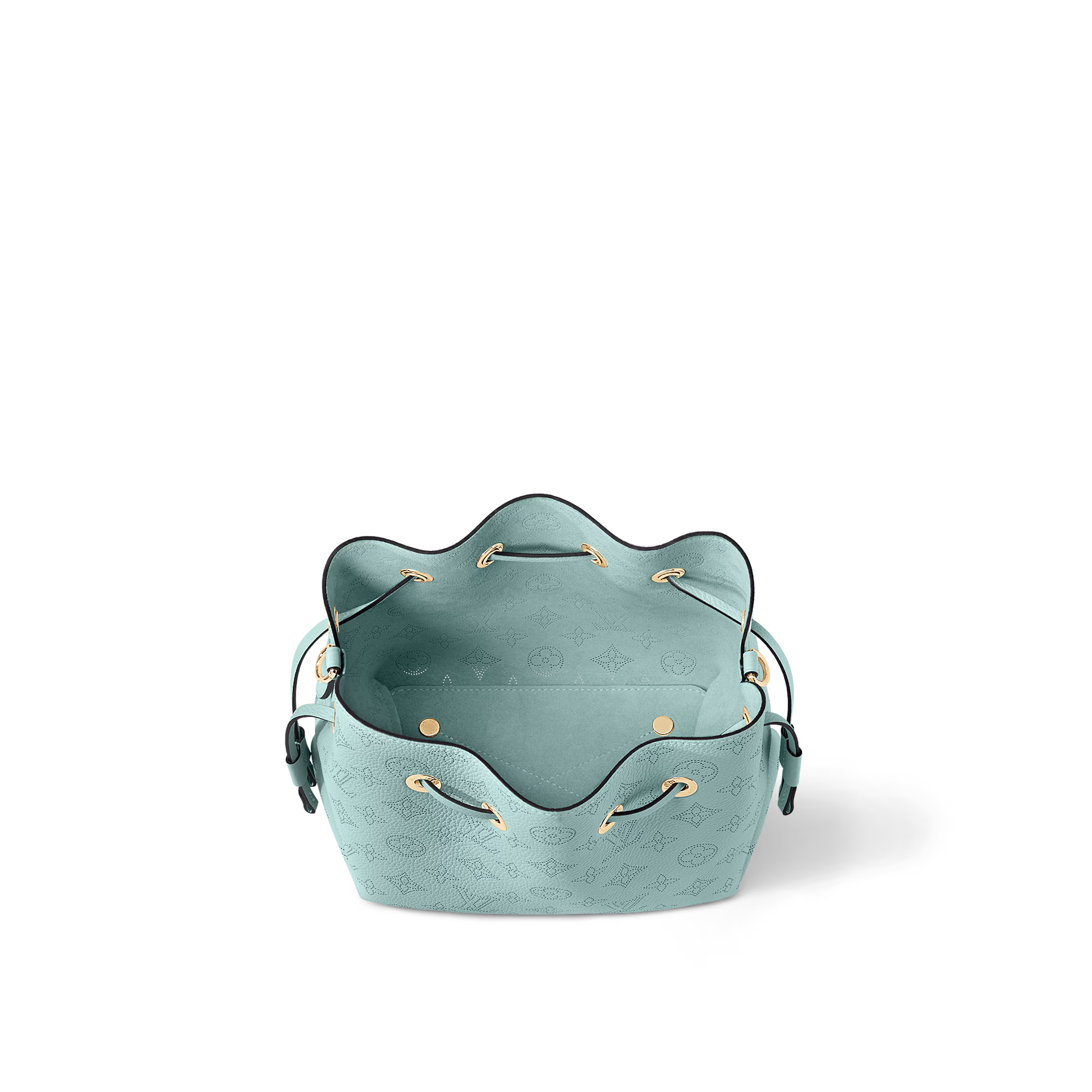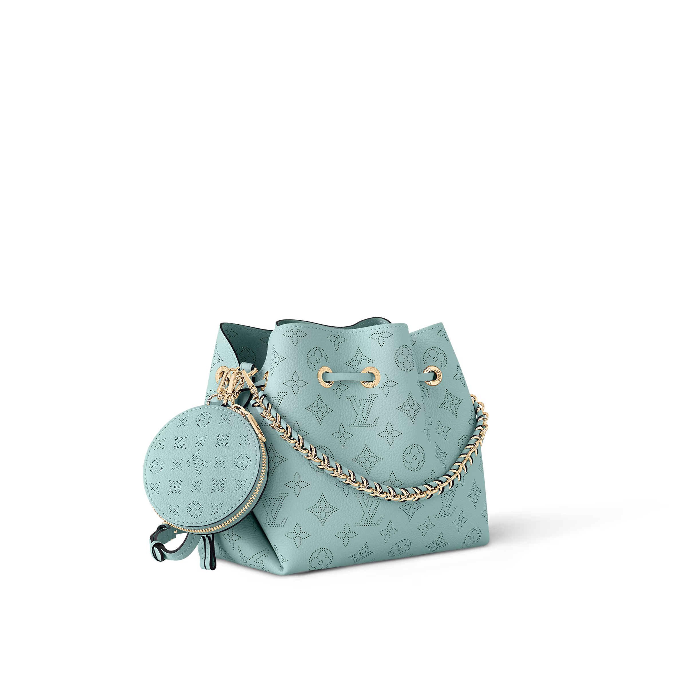Edited this season in a delicate shade that will illuminate any Spring silhouette, the Bella bucket bag is made from Mahina calfskin. The Maison’s signature leather, with its contrasting perforations, is accented with silver hardware. The braided leather-and-metal handle and a detachable round coin purse add feminine charm to this casually sophisticated bag.