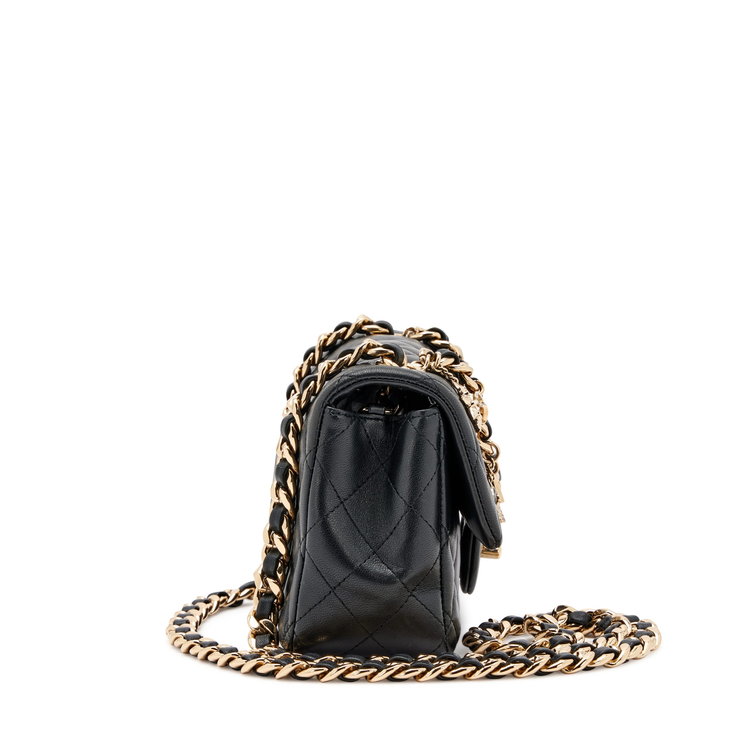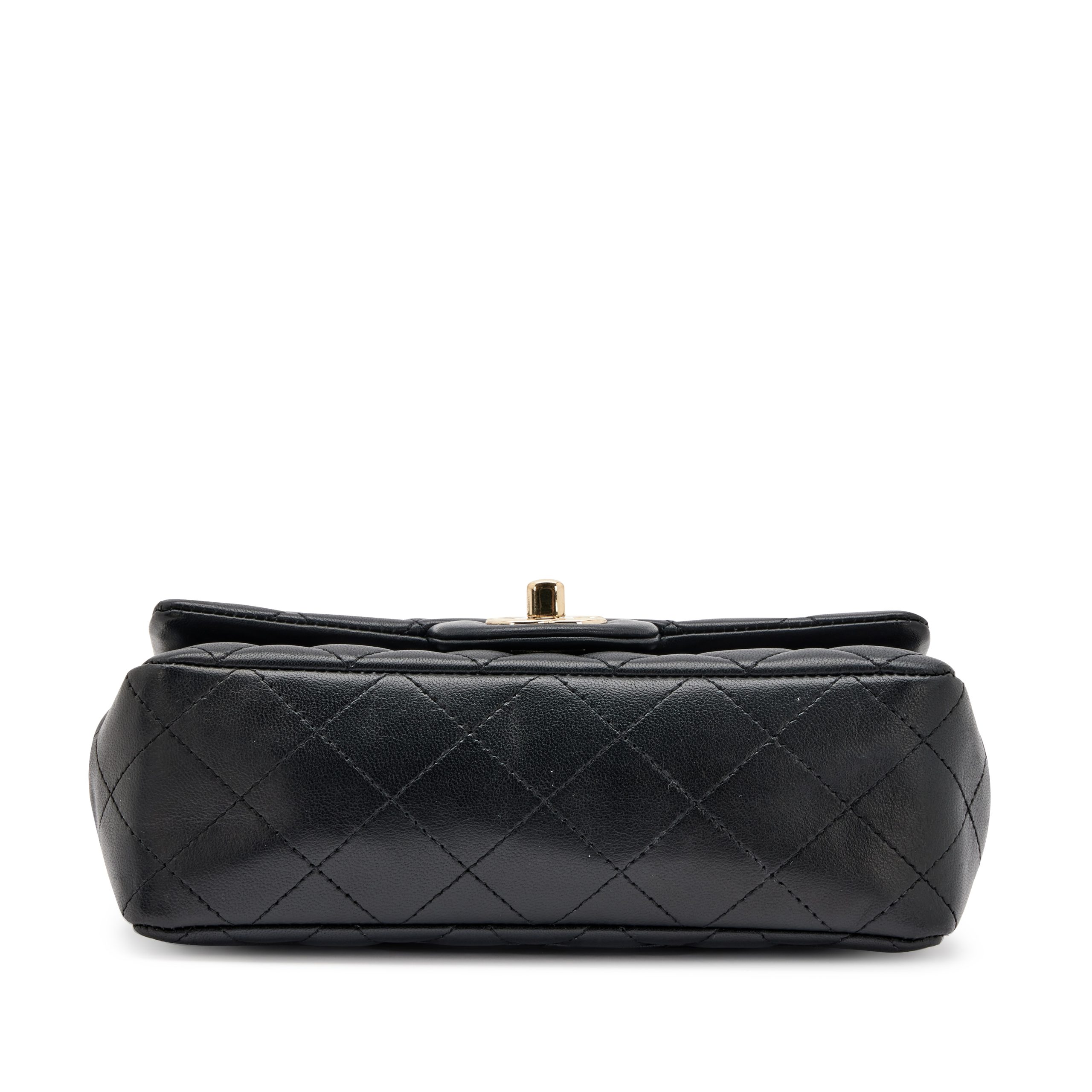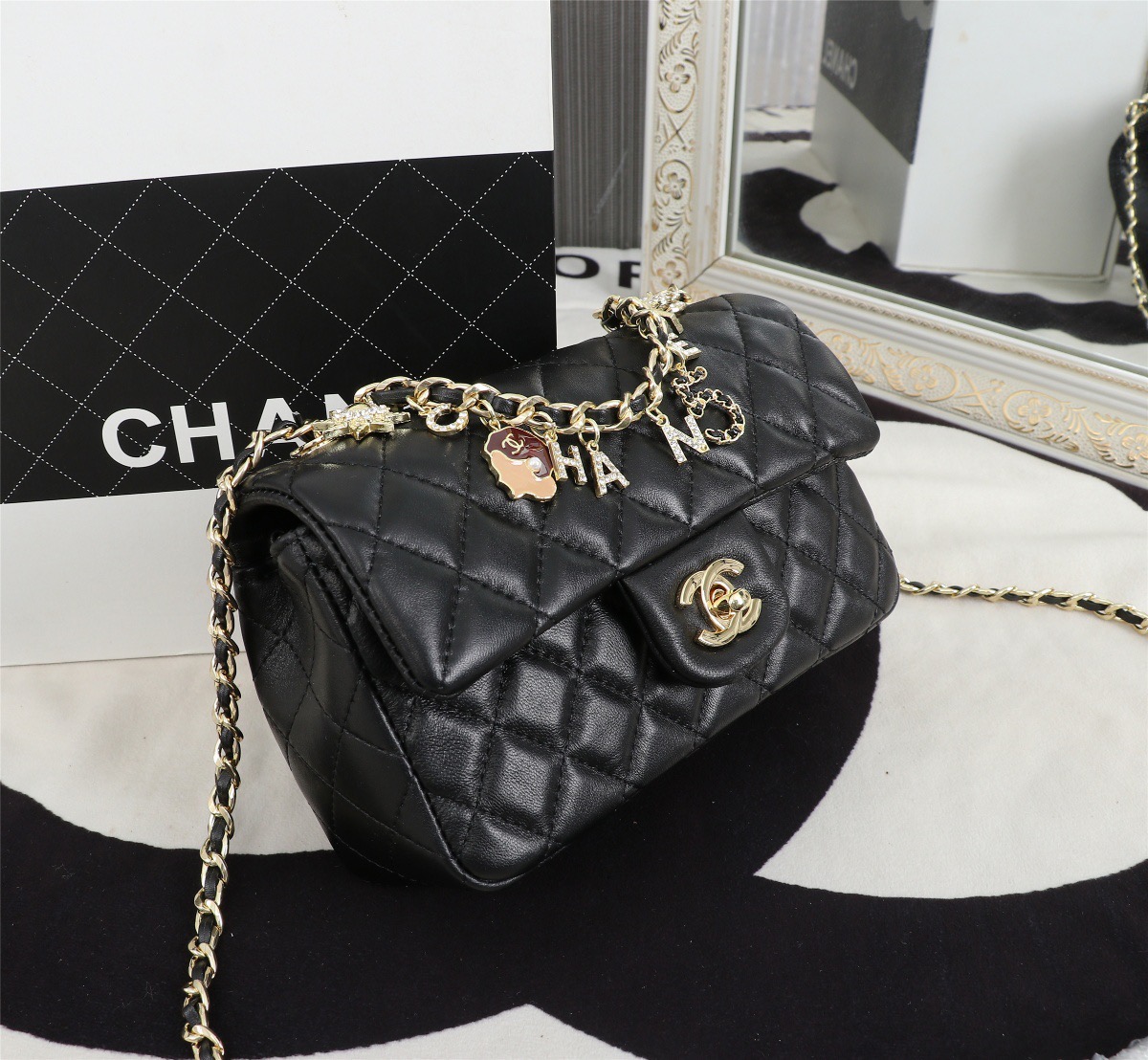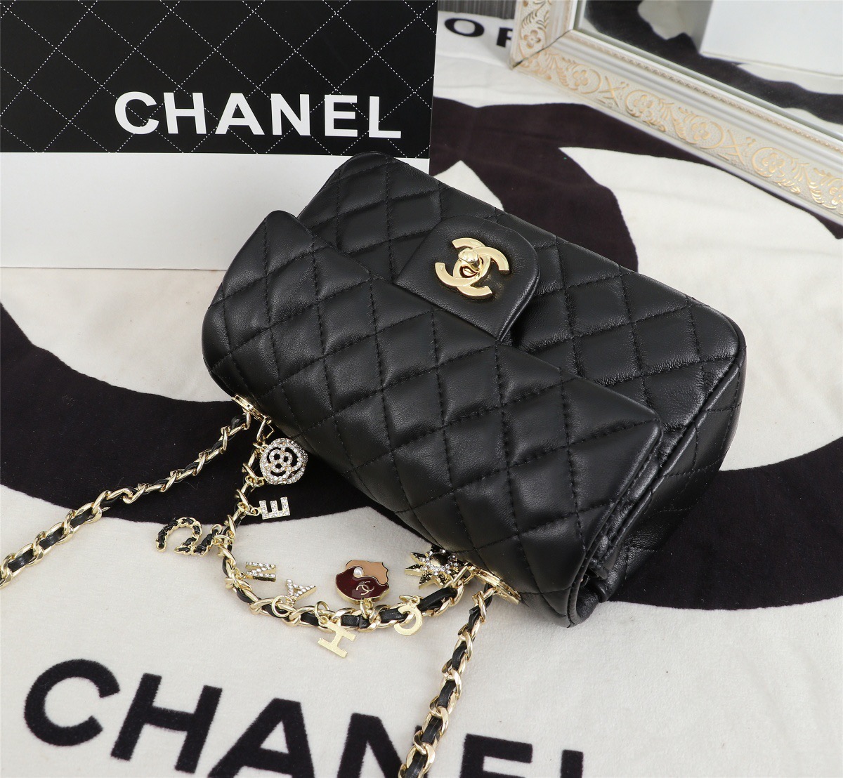 Black Quilted Lambskin Mini Rectangular Coco Charms Flap Bag