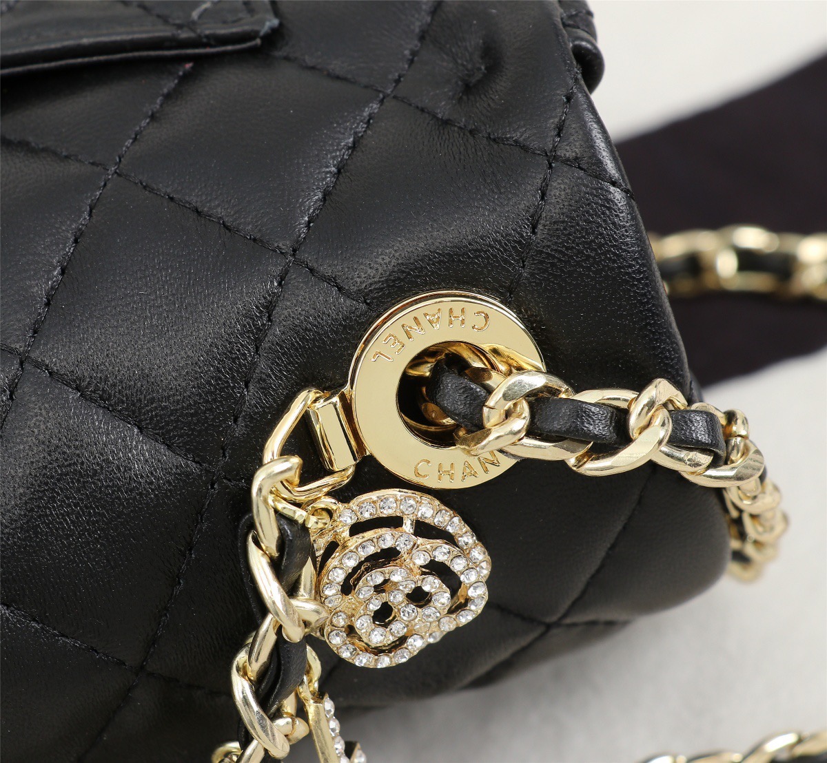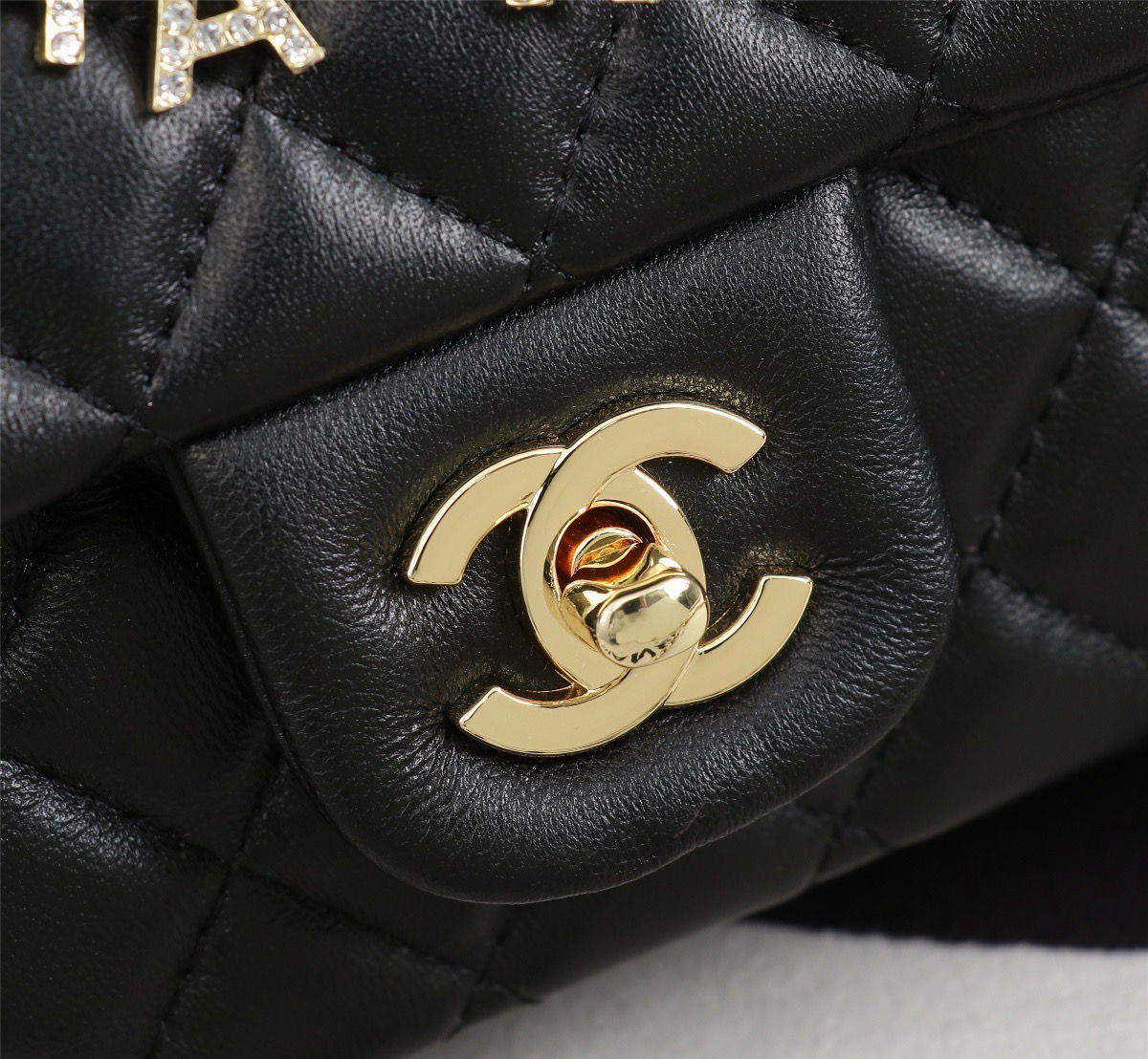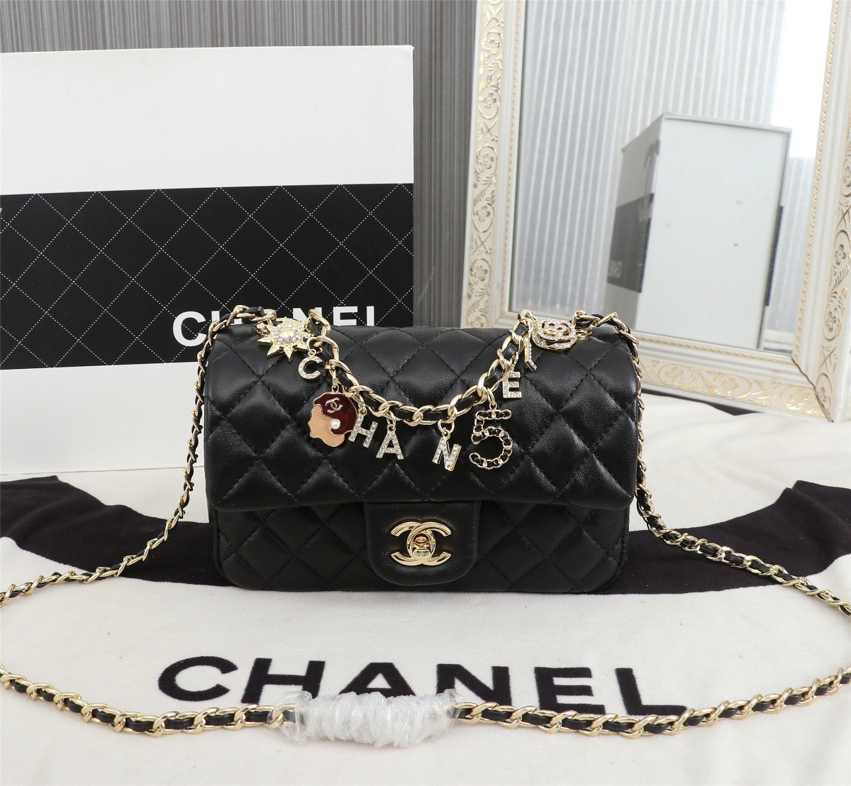 Black Quilted Lambskin Mini Rectangular Coco Charms Flap Bag