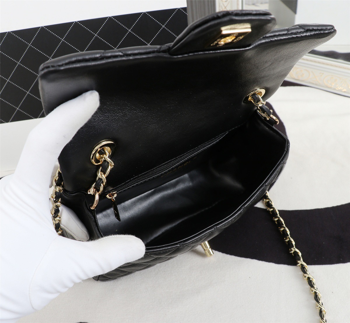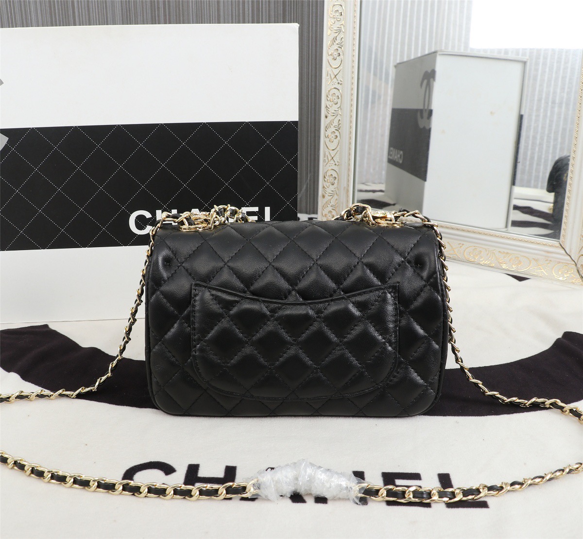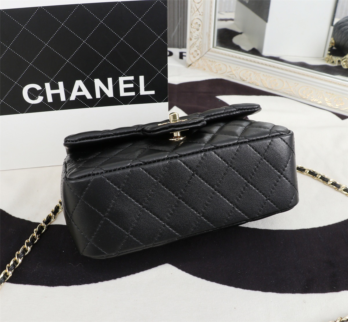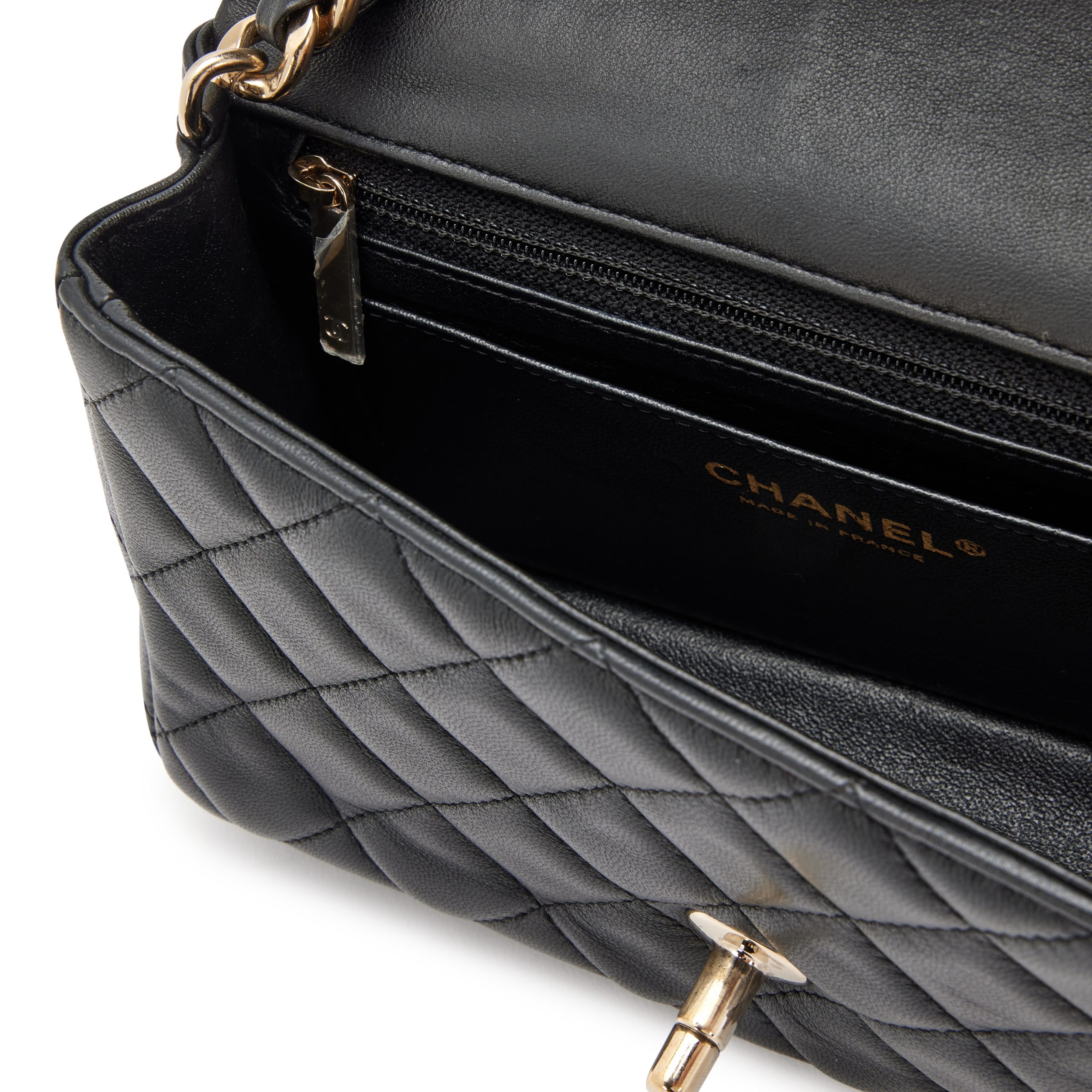Black Quilted Lambskin Mini Rectangular Coco Charms Flap Bag