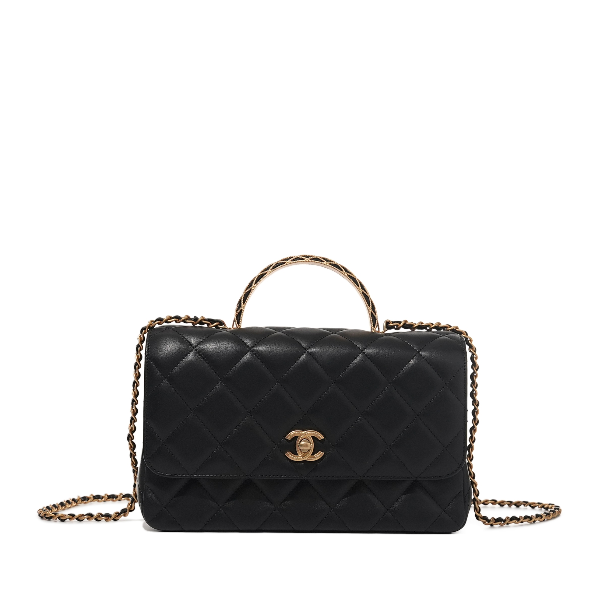 - Gold-finish metal top handle engraved with Christian Dior Paris