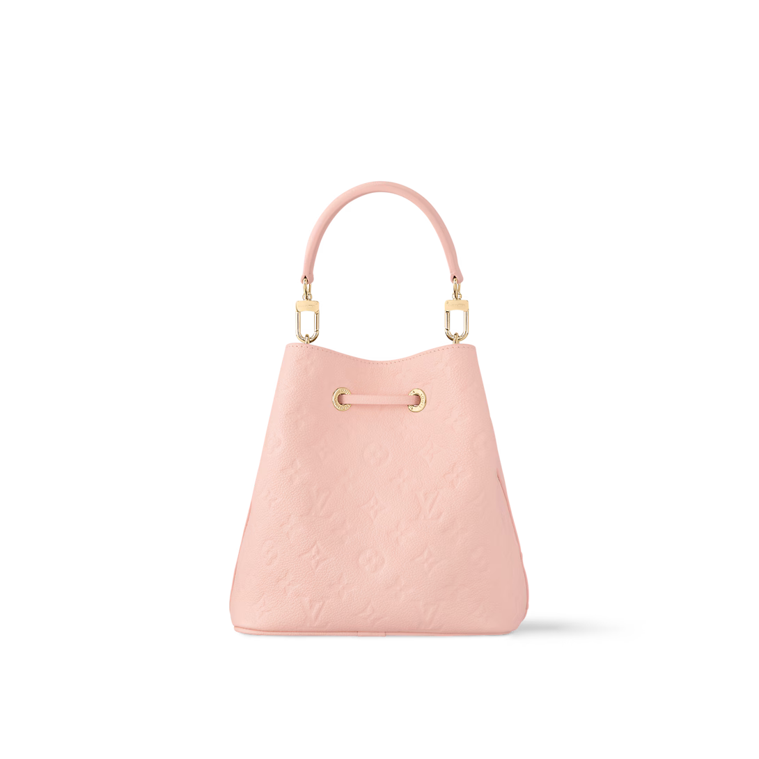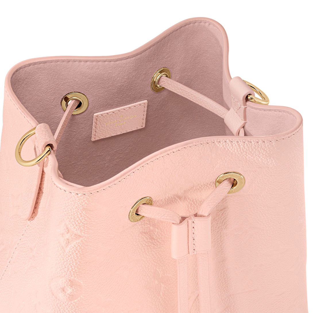 Pastel-toned Monogram Empreinte cowhide leather brings a soft and supple feel to this compact NéoNoé BB bucket bag. The understated Monogram embossing of the leather and pale-gold-color hardware bring quiet elegance. A detachable top handle enables hand carry while a removable and adjustable strap gives shoulder-carry options.