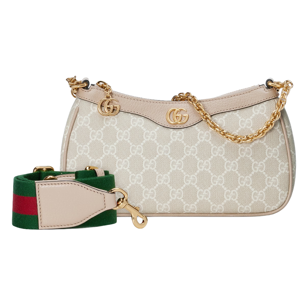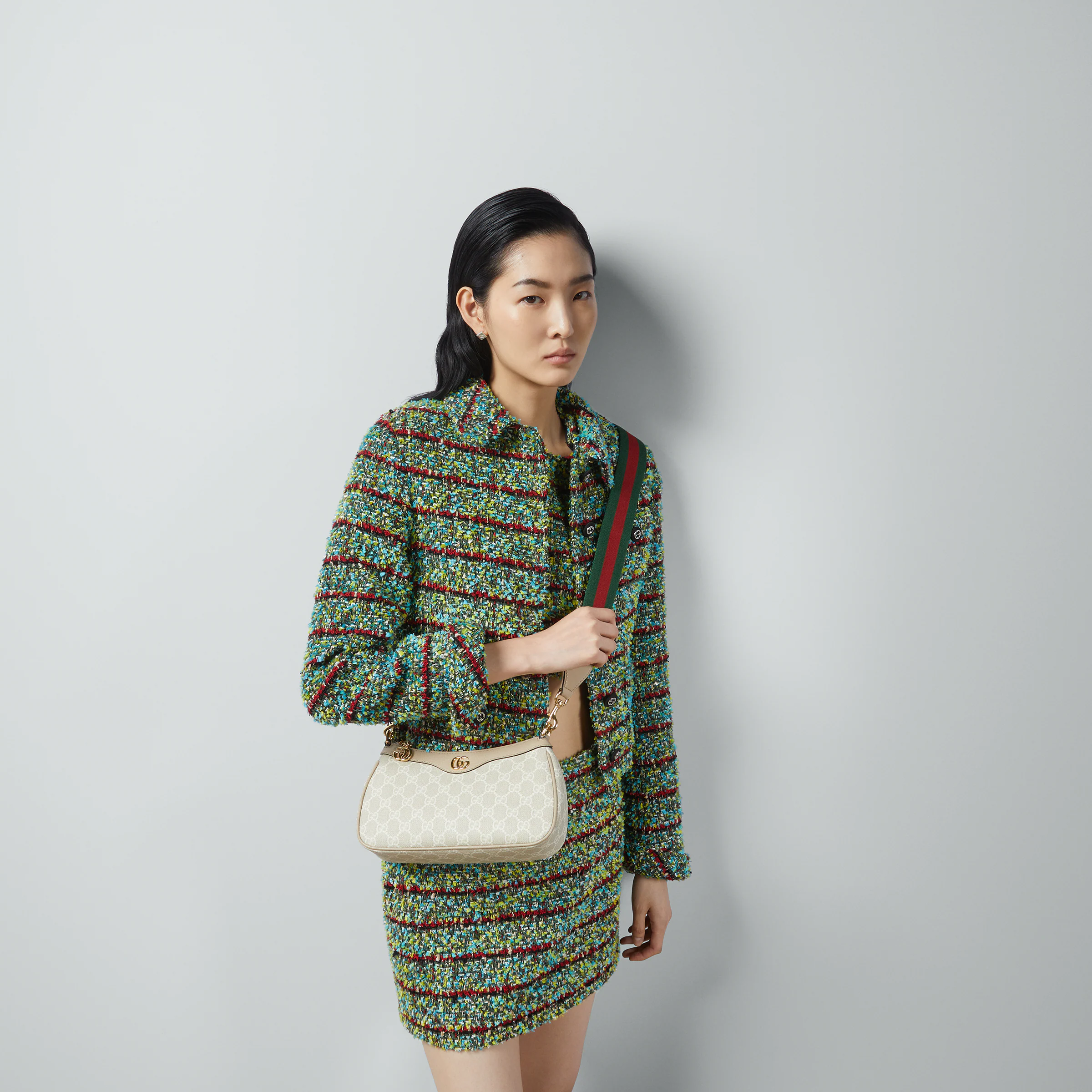 The GG logo is an evolution of the original Gucci rhombi design from the 1930s, and from then it's been an established symbol of Gucci's heritage. This unmistakable pattern decorates this small handbag as part of the latest Ophidia line. A Double G hardware completes the style