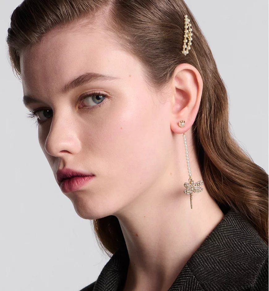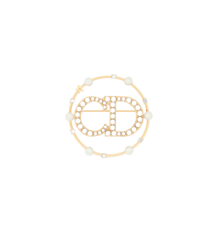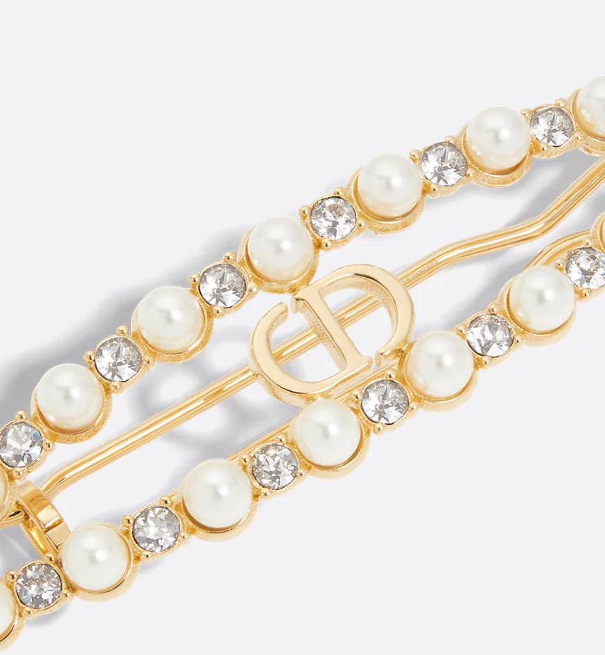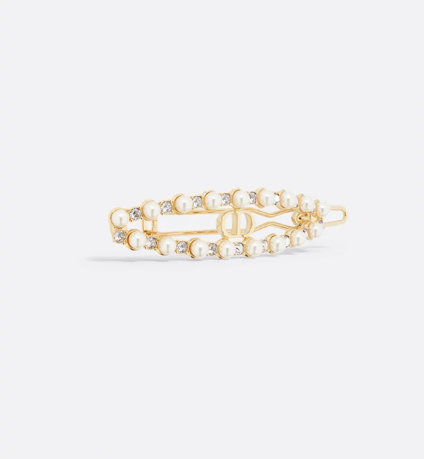 Gold-Finish Metal with White Resin Pearls and Silver-Tone Crystals