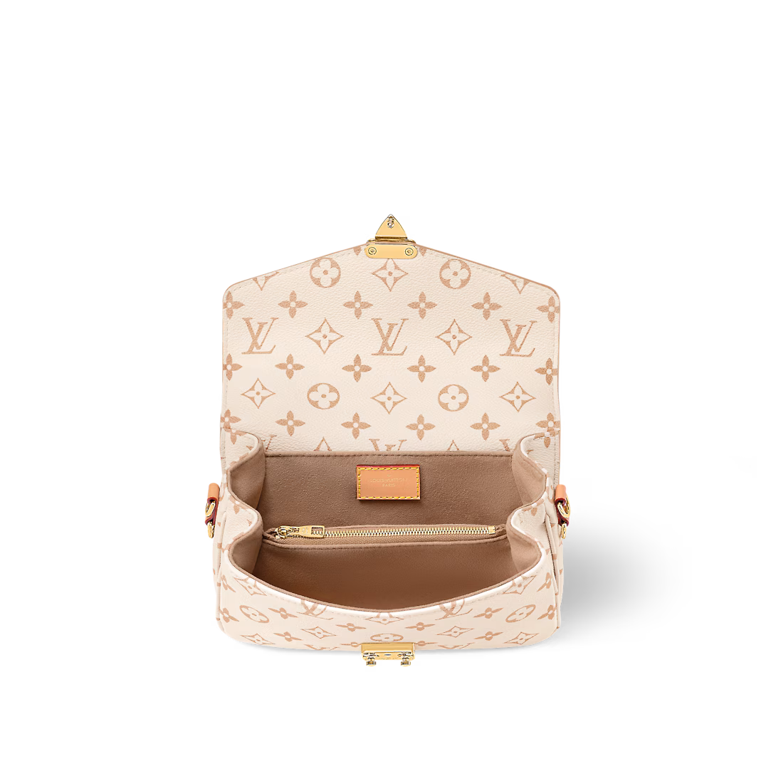 Fresh from Cruise 24, the versatile Pochette Métis East-West handbag showcases a new signature canvas: Monogram Dune. A soft yet strong colorway, the sand-inspired shade brings an air of effortless chic to any ensemble. This east-west model can be styled in a variety of ways, thanks to a leather top handle, detachable chain, and removable leather strap.