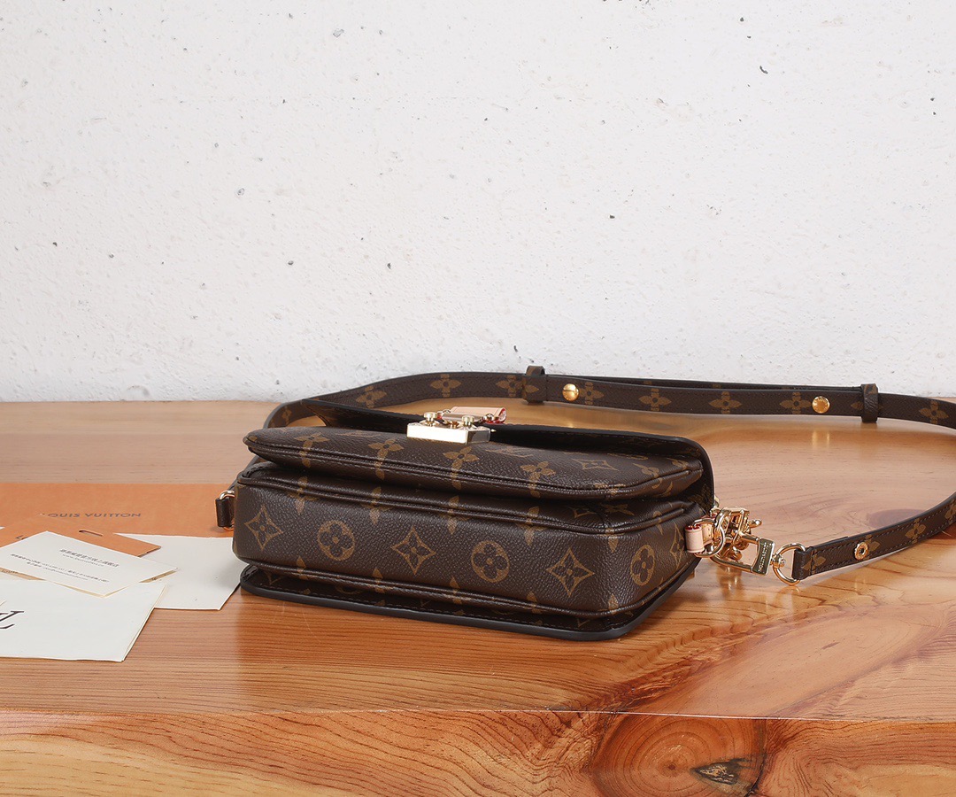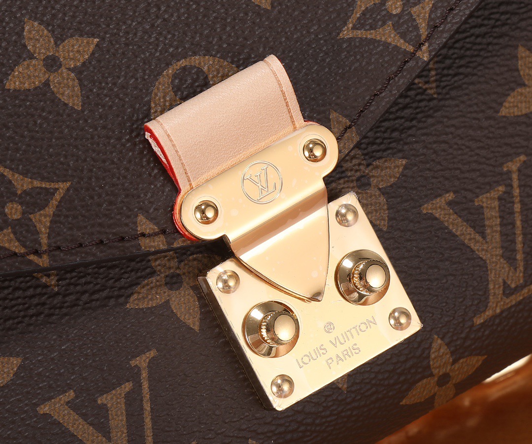 Made from Monogram canvas with natural cowhide-leather trim and the S-lock signature, the Pochette Métis East West bag combines emblematic House cues with new contemporary details like a gold-color chain for fashionable short-shoulder carry. Roomy enough to store an iPhone 13, it has three inside compartments, a zipped pocket inside, and another outside.