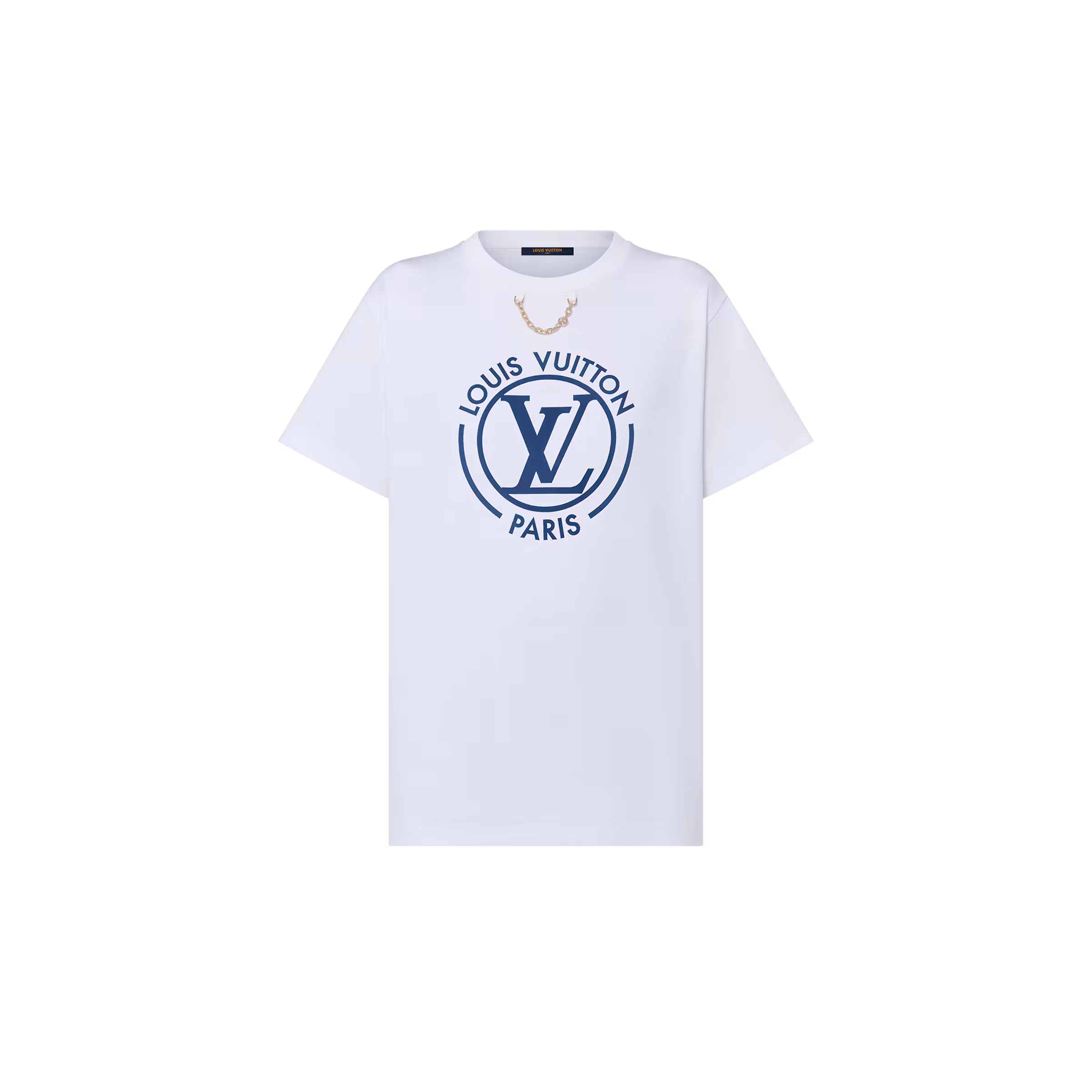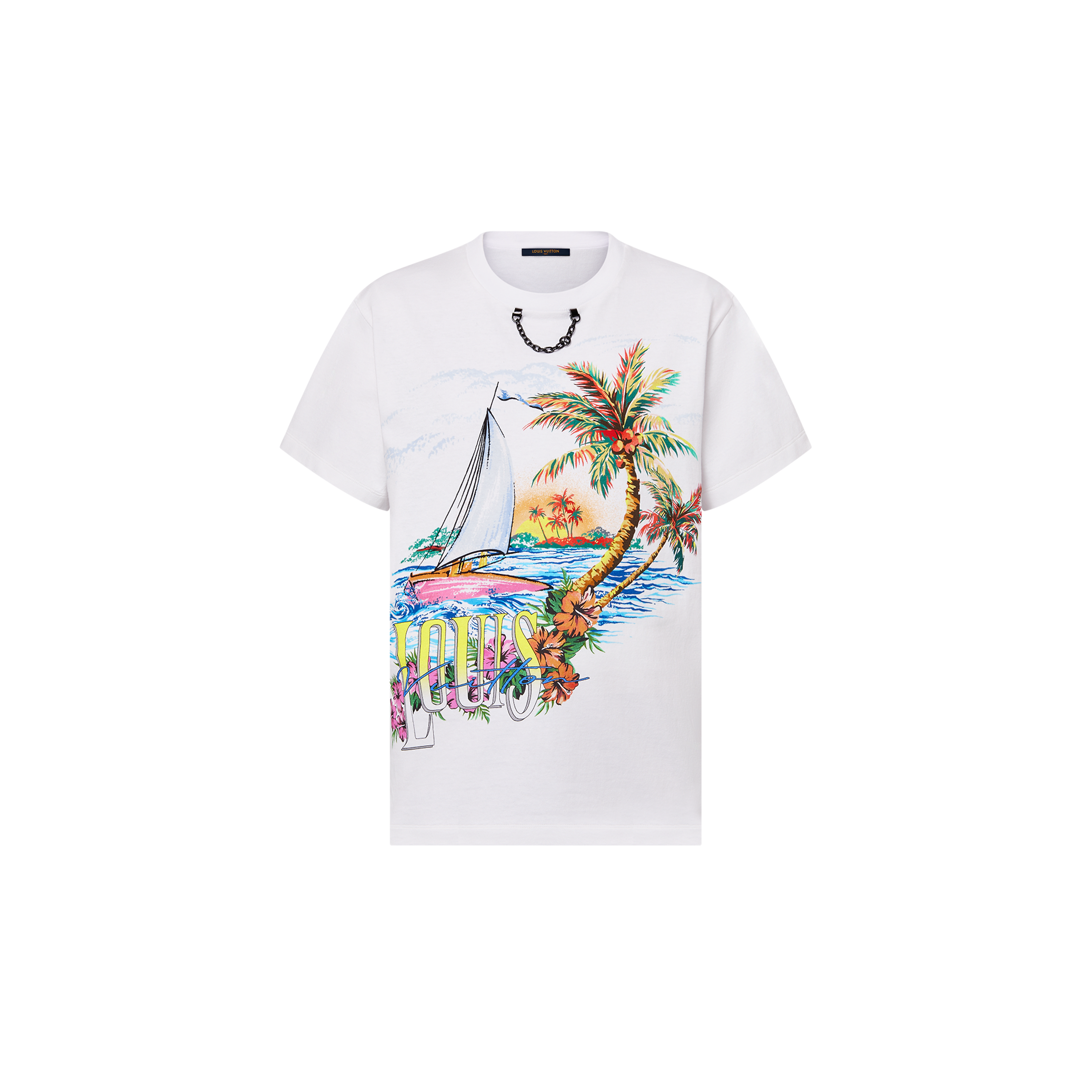 This T-shirt makes a bold summer statement with the LV By The Pool Collection’s signature sunset sailboat motif printed on the front in saturated hues. Cut in a timeless straight shape from soft cotton jersey, the fit is comfortable and casual for daily wear. An LV chain embellishment adds a chic signature detail to the neckline.